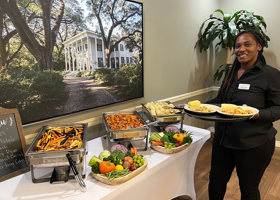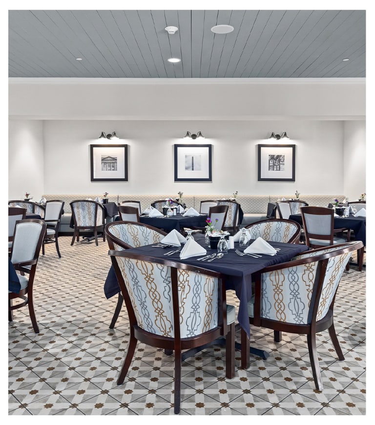 In our warm and inviting dining room, every meal is an opportunity to enjoy the “front porch living” feel of our community, connect with friends, and savor the moment.